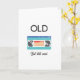 Ett roligt födelsedags kort perfekt för dem som minns dagarna innan wifi och direktuppspelnad! Med en blå, grå och orange clip art av en VHS-bandspelare, står texten ovan i svart modern stil "Gammal" och under bandspelaren, "men fortfarande cool".