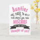 Ett roligt kort till en moster (eller ett eget personligt namn på henne). Om din barns moster alltid får barnen att ställa till rackartyg så är detta den perfekta designen för henne. Skicka det från systrar och bröder och få henne att le!