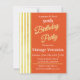 Födelsedagsinbjudningar för vuxna, vintage, personliga med retro-stil. Färgrik bild av en vintage, retro tjej i en blå klänning som blåser ut ljus på en födelsedagstårta. Bakgrunden är orange, krämfärgad och guld. Borta är de dagar då man spottade över hela tårtan och delade den med vänner. Perfekt för att tillföra en gnutta skratt och vintage-estetik till din fest, vår samling innehåller humoristiska födelsedagskort och en rad vintage-inspirerade festartiklar och dekorationer. Omfamna den tidlösa charmen från förr och ge dina födelsedagsfiranden en touch av lättsinne.