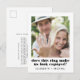 Ett roligt foto förlovningskort meddelande med en bild av er två och din förlovningsring och "ser vi förlovade ut med den här ringen" i fet modern typografi. Lägg till dina förnamn och ett personligt meddelande, till exempel håll utkik efter datumet för bröllopet eller spara datum detaljer.