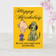 Denna roliga födelsedagskort var designad med en kvinna som nyligen gått igenom en skilsmässa eller ett break i åtanke. Framsidan visar färgglada teckningar av en man och en hund där avsändaren lovar födelsedagsflickan eller -kvinnan en "hund" om den nu singel mottagaren är snäll. Insidan avslöjar överraskande nog att "hunden" är en man, som mottagaren kanske associerar med sin ex-make eller ex-pojkvän. Det humoristiska uttrycket på kortet utnyttjar den vanliga tendensen hos kvinnor att kalla män som är otrogna, kvinnojägare eller helt enkelt bara smutsiga i romantiska relationer för "hundar".