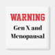 Rolig klimakterie-magnet för Gen X med en djärv ”Varning”- slogan. Perfekt för att tillföra sarkastisk humor till ditt kylskåp, kontor eller arbetsplats. En bra present till Gen X-kvinnor som omfamnar klimakteriet med attityd, självförtroende och humor.