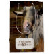 Lustig gammal get i ladugårdsfålla med tungan utstickande för humoristisk 50-årsdag.