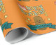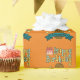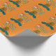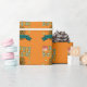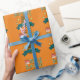 Roligt födelsedagspresentpapper som förgyller din fest. Designen börjar längst upp med Grattis på födelsedagen i grön och gul text med en tårta med rosa glasyr och tre tända ljus bredvid H:et i Grattis. Nedanför texten syns en söt rolig lycklig brun potatis med stickarmar och en stor leende mun. Tvärs över potatisen löper ett blått band med en mall för att lägga till ditt namn och göra det personligt. Slutligen pryder tre gula stjärnor området runt potatisen.
