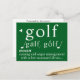 Ge en glad dag till alla golfare med detta roliga golfdefinitions skämtsamma vykort för ilska-hantering och skämt för helgdagar. Med en lekfull, fejkad ordboksdefinition av "golf", fångar denna design den sanna andan av spelet - lika delar skicklighet, svordomar och kreativa reparationer av scorekortet. Den djärva typografin och det rena utförandet gör det till ett perfekt val för golfälskare som uppskattar ett gott skratt, oavsett om de firar en högtid, ger sig ut på en runda eller skickar en snabb hälsning till en medspelare. Perfekt för visning i pro-shop, golf-tema gåvor eller någon som känner till den känslomässiga berg- och dalbanan under 18 hål.