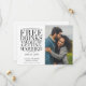 Skål för kärlek, skratt och fria drinkar! Låt oss vara verkliga: de bästa sakerna i livet är värda att fira, och denna lekfulla Save the Date gör det med en twist. Med ett favoritfoto av paret och det lättsamma budskapet ”Fria drinkar och vi gifter oss” ger detta kort dina gäster alla viktiga detaljer samtidigt som de får ett gott skratt. Perfekt för par som vet hur man ska ha roligt och vill att deras nära och kära ska vara redo för en oförglömlig fest. Det är inte bara en Save the Date – det är löftet om en fest!