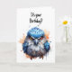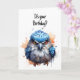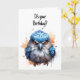 Söt akvarellkonst av en grinig blå fågel på detta sarkastiskt roliga födelsedagskort.