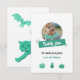 Anpassningsbart tackkort med foto och meddelande. Grön med vit bakgrund. Perfekt för din son eller dotters fest. Rolig Halloween-tema med färgglada karaktärer.