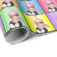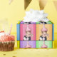 Flickan ser grumpy, äcklad eller ledsen under henne den 1st födelsedagsfesten. Färgrikt belagt med tegel mönster. Roligt/humoristiskt. Hälsningkortet se "babyen tittar grumpy på henne för den första födelsedagen" i mitt lager för en närbildversion av detta foto (och att förbättra se henne uttryckt).