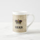 Rolig rolig "hennes" text med en purpurfärgad kronaillustration på en handskriven bakgrund för vintagepapper.