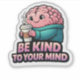 Självomsorg börjar här! Den här högdetaljerade seriehjärnan i en mysig tröja som håller kaffe är den perfekta "Var snäll mot din hjärna" dekalen för kontorsarbetare och studenter. En rolig och stödjande vinyldekal för din bärbara dator eller arbetsplats.