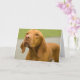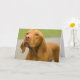 Rolig bild på en röd Vizsla som pekar nosen i luften och sniffar upp en doft. Kanske är det födelsedagstårta! Greeting inuti säger "Känner jag lukten av tårta?" och kan anpassas eller personifieras om du vill, eller raderas för ett tomt kort. Detta är ett bra födelsedagskort, eller så kan du ändra hälsningen för alla tillfällen. Alla hundälskare kommer att njuta av denna söta hundbild!