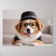 Rolig hund med glas och hatt poster