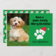 Söt och rolig hund foto julkort dekorerat med ett tassavtryck och en röd tomtehatt. Lägg till ett foto av din hund på framsidan av detta gröna julkort. Texten säger, "Ha en tass-itivt God Jul."