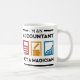 En rolig revisorkontorsmugg för din medarbetare, chef, fru, make, föräldrar, anställda eller även dig. Detta ses roligt med det röda räknemaskintangentbordet, kartlägger blått, och guld- pengarkonst. Detta har mer än en färg, så den har sett jubel.