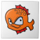 Bedårande ilsken tecknad guldfisk. Han har en orange kropp och röda fenor. Hans ögon är stora med ett roligt men ilsket uttryck. Hans mun är i ett halvt leende som bidrar till hans komiska utseende.