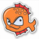 Bedårande ilsken tecknad guldfisk. Han har en orange kropp och röda fenor. Hans ögon är stora med ett roligt men ilsket uttryck. Hans mun är i ett halvt leende som bidrar till hans komiska utseende.