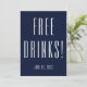 Roligt blåvitt examensfestkort med Gratis drycker och ett datum på framsidan och Javisst, förresten, (namn) har tagit examen! på baksidan. Vacker typsnitt på baksidan för Examensfest och examenens namn. Anpassa med festinformation. Skicka ut och låt folk komma och fira din stora prestation! Se relaterade produkter i vår butik, Enchanted Finch.