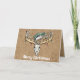Roligt julkort med jakt och fiske. Aborre hoppar över hjärnskål med stora horn insvepta i julgransbelysning. Designen är handritad av ©Tina Hesskew från Fishing Hunting Life.