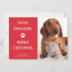 Det här älskvärda julkortet för katt- och hundägare säger "Glad Jul-roïdagen" och "Meow-y jul" i modernt fantasifull vit typografi, med ett sött tassavtryck och plats för ditt favoritfoto av din valp och din kattunge!