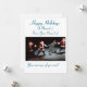 Fira högtidsperioden med detta unika och fantasifulla gratulationskort! Framsidan av kortet visar en glad Chassid dansande med tre personer utklädda i Santa Claus-kostymer. Denna förtjusande blandning av kulturella och högtidsrelaterade bilder tillför en touch av kul och glädje.