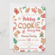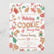 En inbjudan till en helgdag-cookie-utbytesfest i roligt med söta illustrationer av cookies, lagning, hus, gickebröd, små stjärnor och mer i rött och grönt. Med en söt cookie-handskrift är alla illustrationer i färg redigerbara för att matcha din egen färg-palett på vitt