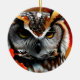 En ståtlig uggla med ett rött blad ai-konst. Rolig julpun med uggla. Förhoppningsvis är din jul en högt!
