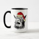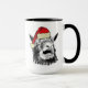 Ge glädje och skratt till högtiden med denna roliga och tokiga julskrikande get-ritade mugg. Perfekt för djurälskare och ett bra sätt att tillföra humor och behovet av att skrika under den festliga säsongen. Galen julig gårdsget-mugg, perfekt för mamma, pappa, tonåringar, mor- och farföräldrar, vänner, bönder och alla djurälskare. Julens gårdsdjur som bär en tomtehatt illustration i svart, vitt och rött, originalkonst av konstnären Catherine Sweetman.
