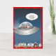 Roliga julkort med Tomte som kan personifieras med din egen anpassade pratbubbla! Denna unika serie skapas av Raphaela Wilson och visar Tomten och Rudolf det röda nosrenen flygande högt över ett bostadsområde i en silverfärgad UFO-farkost. Tomtens pratbubbla säger: " Woohoo! Tekniken är fantastisk!", men detta kan ändras till din egen text om du hellre vill ha något annat... På insidan av kortet finns 2 söta gröna utomjordingar i rymddräkter som står i snön. En av dem håller en pingvin han samlat in, och den andres pratbubbla säger: "Sa jag inte åt dig att stanna vid rymdskeppet??" Det anpassade julmeddelandet lyder: "Hoppas ditt nya år blir himmelriket. God Jul!", men du kan också ändra detta till din egen formulering. Om du älskar science fiction eller är en nörd med en bra humor, kommer du att älska dessa roliga alien-jul друг, och det kommer dina vänner och familj också! Kategori: roliga julkort; roliga Tomte-j