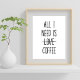 Piffa upp ditt kaffehörn med vår 'Allt jag behöver är kaffe' affisch! Enkel, rolig och perfekt för kaffefanatiker. #Kaffehumor