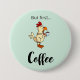 Rolig kaffeknapp med kyckling som läser "...men först kaffe".
