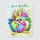 Rolig och söt påskkanin seriefigur som biter på ett dekorerat ägg. Original digital konst Copyright BluedarkArt.