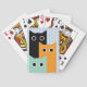 Bedårande spelkort med tre roliga katter. En är svart, till vänster om designen, en är orange, något lägre och till höger om den svarta katten, något framför den och en är teal, lägre än de andra två katterna och står framför dem. Den enda egenskapen hos katterna är stora runda ögon.