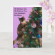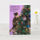 Rolig katt i träd spanar på julgransprydnader jul kort