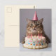 Rolig katt med födelselsdagstårta vykort