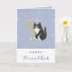 Rolig Katt Menorah & Dreidel Glad Hanukkah Blå Kort