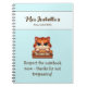 Vi presenterar vår anteckningsbok med en grinig katt med ett meddelande som sätter tonen: "Respektera anteckningsbokens zon - tack för att du inte tränger dig in!" Det är en lekfull men bestämd påminnelse om att hedra personligt utrymme och kreativa gränser. Perfekt för skola, arbete eller personligt bruk, den här anteckningsboken lägger till en touch av humor och söt charm till din vardagliga anteckning.
