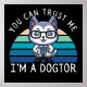 Denna söta kawaii-design visar en huskyhund klädd som läkare mot en vintage-solnedgångsbakgrund, och citatet "Du kan lita på mig, jag är en hunddoktor."
