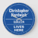Rolig Minnesväggplakett i form av en väggklocka för en kirurg. Blå och vit plakett. Redigera designen för att ändra texten så att den passar mottagaren.