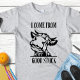 Med en grafisk design av en tecknad ko med texten "Jag kommer från bra stam" i feta bokstäver, är denna T-shirt säker på att ge en leende på alles ansikte. Sammantaget är "Rolig ko jag kommer från bra stam" Baby T-Shirt en rolig och bedårande tillägg till din babys garderob. Det gör en bra present för baby shower, födelsedagar eller någon annan tillfälle.