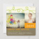 Rolgrön, mörkbrun och orange klotter / loop-grafiska enkel mönster, modern 2-foto examensfest-inbjudan platt kort.