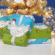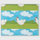 Få dina gåvor att sticka ut med detta glada löpkocka-inpackningspapper. Den ljusa tecknade designen med en lekfull höna, blå himmel och gårdsplanmiljö ger en rolig och minnesvärd touch till alla presenter. Perfekt för födelsedagar, firanden eller ovanliga gåvor, detta inpackningspapper ger personlighet och charm till varje paket.
