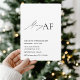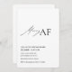 Tillsätt humor till din högtidsfirande med denna Merry AF minimalistiska juldagsinbjudan. Med snygg typografi och en fräck modern twist är detta kort perfekt för Friendsmas-fester, högtidscocktails eller avslappnade juldagar med vänner. Anpassa texten för dina egna evenemangsuppgifter och skapa tonen för en festlig, rolig och oförglömlig kväll.
