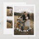 Rolig Modern Enkel Cirkel Typ Tre Foto Semesterkort har en rolig, fet typ runt ditt foto, tillsammans med två foton på baksidan.