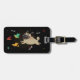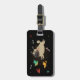 Bagagemärkre med rolig rinnande mops för gulligt tryck och fåglar runt om ben och konfettiar.