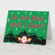 Rolig motorcykeljulkort med Tomte pappa som sjunger "Hör du vad jag hör?" med en grupp motorcykelsilhuetter i bakgrunden. Inre meddelande God Jul kan redigeras eller läggas till.