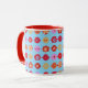rolig och livlig mönstrad mugg med blommor och tärningar
