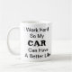 Rolig mugg med texten "I work hard so my car can have a better life". Jag arbetar hårt så att min bil kan få ett bättre liv. En rolig present till bilälskaren.