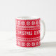 OCD Tvångsmässig julstörning kaffemugg. Personlig ful jultröja mönster 11oz mugg för kaffe, te eller varm choklad. Roligt julfirande presentidé för trendiga män, kvinnor och barn. Röd eller grön eller anpassad bakgrundsfärg. Söt mysig nordisk stickningsdesign dryckeskärl för hemmet eller kontoret. Finns även som stor överdimensionerad kopp och stora resemuggar. Lägg till namn, monogram, årstids hälsningar eller rolig citat. God Jul! Vintage typografi bokstäver.
