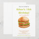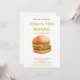 Fira din barns speciella dag med denna roliga och smakliga hamburgarfödelsedagsinbjudan! Med en läcker hamburgermotiv är denna inbjudan perfekt för mat-tema-fester, snabbmat-fans eller vilken rolig födelsedagsfirning som helst. Helt anpassningsbar - lägg till ditt barns namn, ålder och evenemangsinformation för att skapa den perfekta inbjudan.